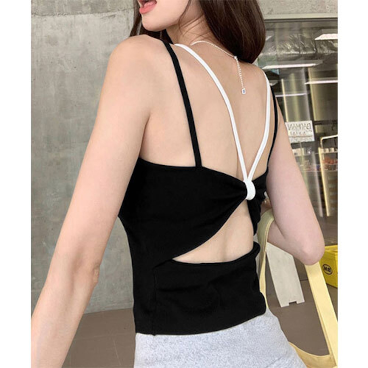 - 背中あき×ダブルストラップで抜け感のある韓国風スタイル