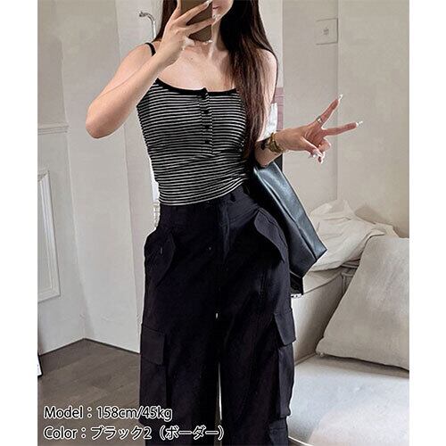 胸元のボタンがアクセントになった、カップ付き一体型キャミソール。