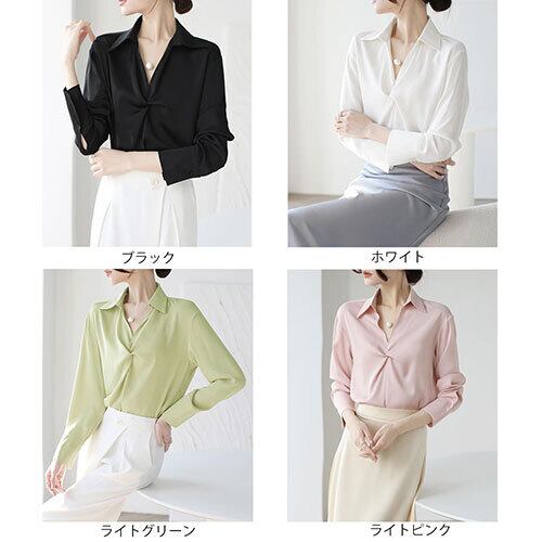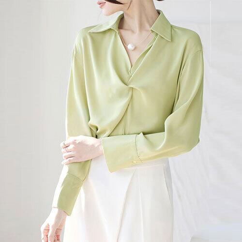 しなやかなドレープと繊細な光沢が美しい、韓国風のツイストデザインブラウス。