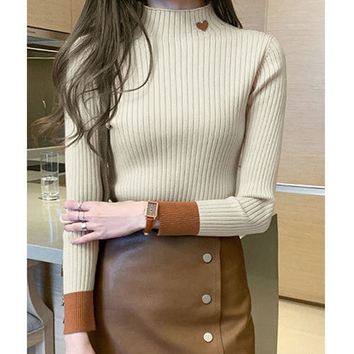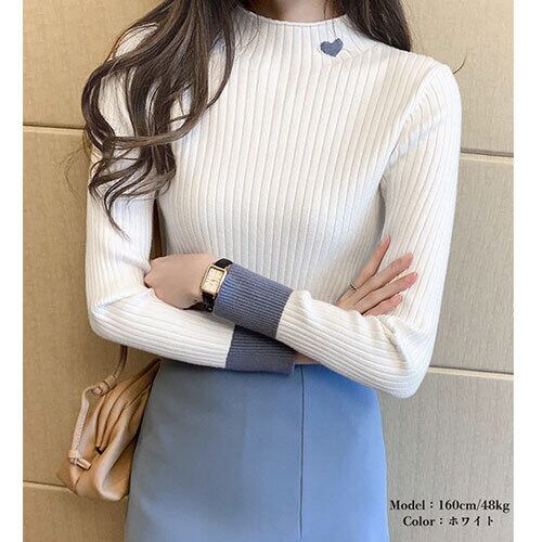 首元のハート刺しゅうと袖のカラー切り替えがポイントのリブニットは、シンプルながら今年らしいデザインで大人カジュアルにぴったり。着やせ効果もあり、韓国風コーデにも◎。長袖でインナー使いにも適しており、季節を問わず着回し力抜群。デニムに合わせるだけでコーデが完成する、使いやすいニットトップスです。