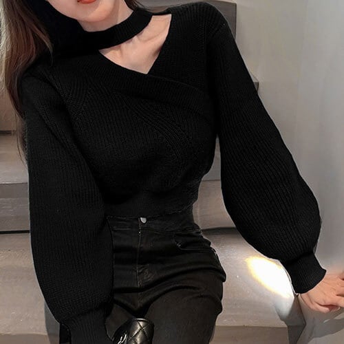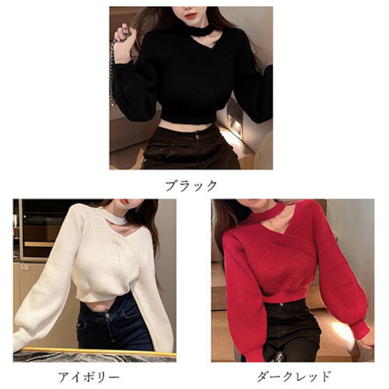 ショート丈×オフショルダーが秋冬コーデに抜け感を添える、大人可愛いリブニットトップス。ホルターネック風の肩開きデザインとぽわんとしたランタンスリーブが、女性らしさとセクシーさを絶妙に演出。黒の無地で着回しやすく、韓国風のオルチャンスタイルにも◎。カジュアルにもきれいめにも合わせやすく、これからの季節に重宝する万能アイテムです。