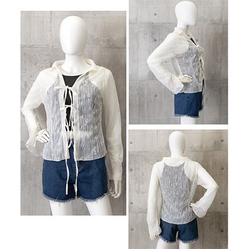 透け感のある軽やかな素材が女性らしさと抜け感を演出するシアーシャツ。やや長めの袖とフレアスリーブが手元を華奢に見せ、上品で繊細な印象をプラスします。インナーにキャミソールやタンクトップを合わせればフェミニンなスタイリングが完成し、シンプルながら存在感のある着こなしが可能。季節の変わり目にも活躍し、デイリーからお出かけまで幅広く対応できる万能アイテムです。