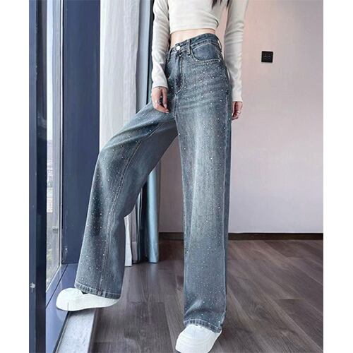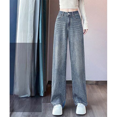 ラインストーンが散りばめられ、動くたびにきらめく存在感抜群のレディースデニムパンツ。程よい色落ち加工でヴィンテージ風のトレンド感を楽しめるデザインが魅力です。ハイウエスト仕様によりトップスをインしてもすっきりとしたシルエットを演出し、スタイルアップ効果も抜群。華やかさとこなれ感を兼ね備え、カジュアルからきれいめまで幅広いコーディネートに対応可能。日常使いはもちろん、特別なお出かけにも映える着映えアイテムで、色違いで揃えたくなるほど着回し力の高い一本です。