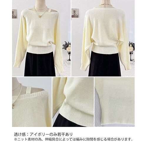 アシンメトリーなワンショルダーが特徴のレディースニットトップス。ストラップ付きのオフショルダー仕様で、絶妙な肩見せが女性らしい抜け感とさりげない色気を演出。ゆったりとしたシルエットで着やせ効果もあり、無地デザインは韓国風のトレンド感をプラス。カジュアルにもきれいめにも着回せる万能アイテムで、ミニスカートと合わせれば大人可愛い雰囲気に、ワイドパンツと組み合わせればこなれ感のある秋冬コーデが完成する一枚。
