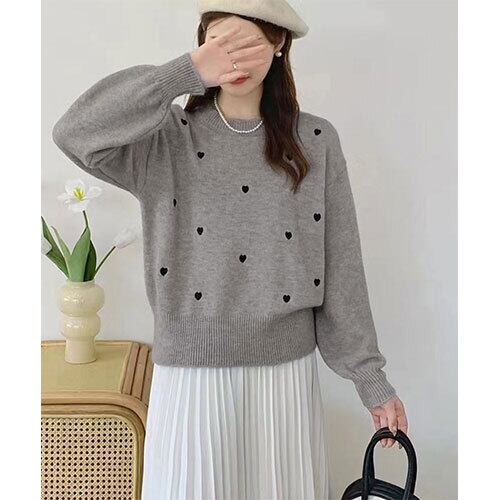 トレンド感あるハート柄がポップで可愛い印象の配色ニットプルオーバー。柔らかな風合いで肌ざわりが心地よく、秋冬のデイリー使いにぴったり。程よいゆとりを持たせつつオーバーすぎないシルエットで着やせ効果も期待でき、大人可愛いスタイルを演出。丸首デザインでフェミニンさをプラスし、デニムやフレアスカート、ワイドパンツなど幅広いアイテムと好相性。カジュアルにもガーリーにも着回せる万能トップスで、女子力を高めつつあったかくきれいめに仕上がる秋冬の必須アイテム。