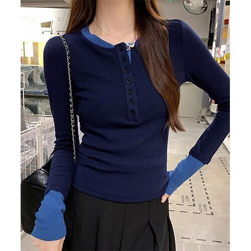 配色のコントラストが映えるリブ編みヘンリーネックTシャツ。衿や袖口の切り替えとステッチがさりげないアクセントとなり、シンプルながらトレンド感を演出します。柔らかく伸縮性のある素材で体にほどよくフィットし、細見え効果も期待できるタイトシルエット。フロントボタンを開けてインナーを覗かせるなどアレンジも楽しめ、着回し力抜群。デニムやカーゴパンツと合わせれば、旬のカジュアルスタイルに仕上がる秋服に最適な一枚です。