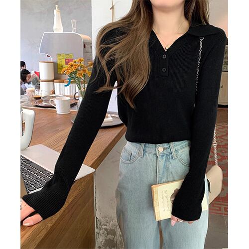 シンプルながら洗練された印象を与えるポロリブニットトップスは、程よくフィットするシルエットで美しいボディラインを演出します。1枚で着ても存在感があり、コートのインナーとしても活躍するため季節感のあるスタイリングが可能。ベーシックでありながら上品さを兼ね備え、幅広いコーディネートに取り入れやすい万能アイテムです。