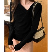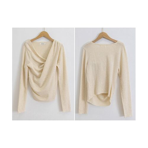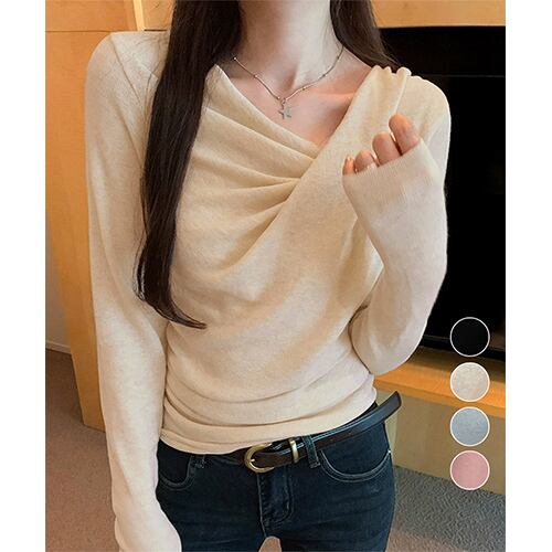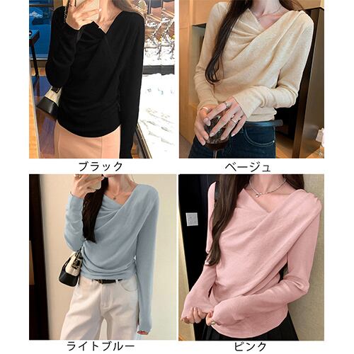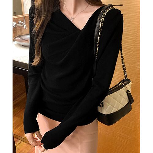 上品なドレープデザインが魅力の長袖ニットトップスは、柔らかな素材で肌触りが良く快適に着られる一枚。胸元の美しいドレープが女性らしさを引き立て、顔回りを華やかに演出します。腰周りをすっきり見せる洗練されたシルエットで華奢感をアップし、シンプルながらエレガントな雰囲気を漂わせるのもポイント。デイリーからオフィスまで幅広く活躍し、1枚で上品さと実用性を兼ね備えた万能アイテムです。