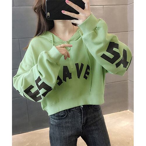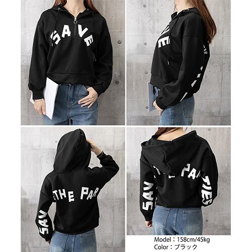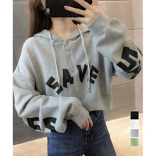 トレンド感のあるショート丈フーディは、大きめロゴがアクセントとなり、着るだけで主役級の存在感を放つ一枚。ハーフジップで着脱しやすく、程よい抜け感を演出できるのも魅力。ドロップショルダーとフードの組み合わせがラフでこなれた雰囲気を作り、ハイウエストのデニムやスカートとも好相性。春・秋・冬のカジュアルスタイルに幅広く活躍し、気軽に取り入れられる万能アイテムに仕上がっています。