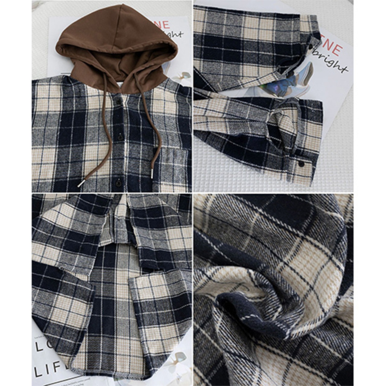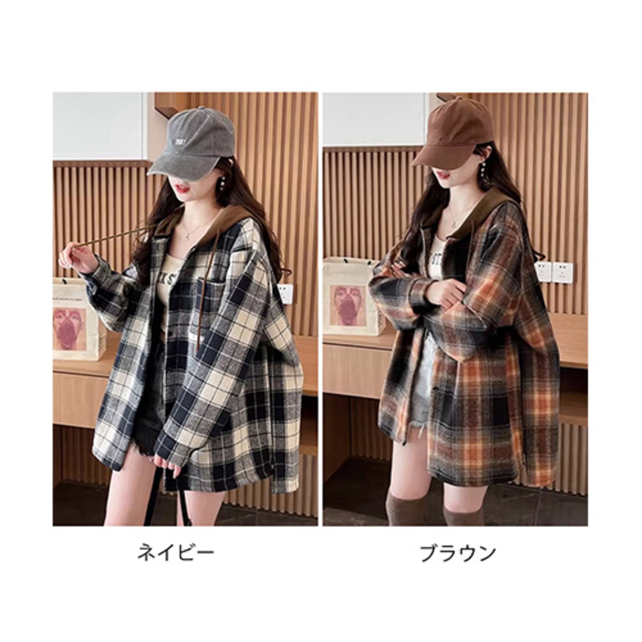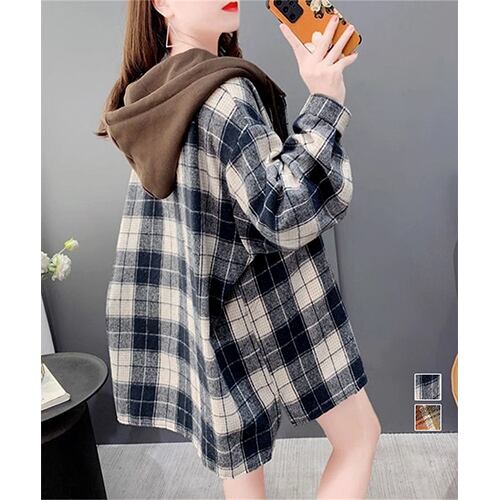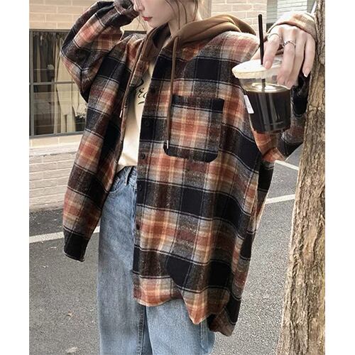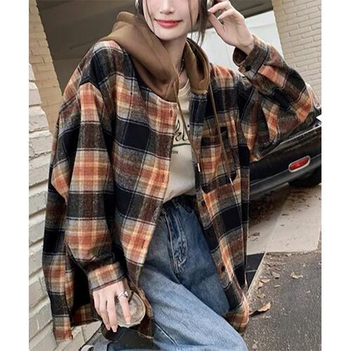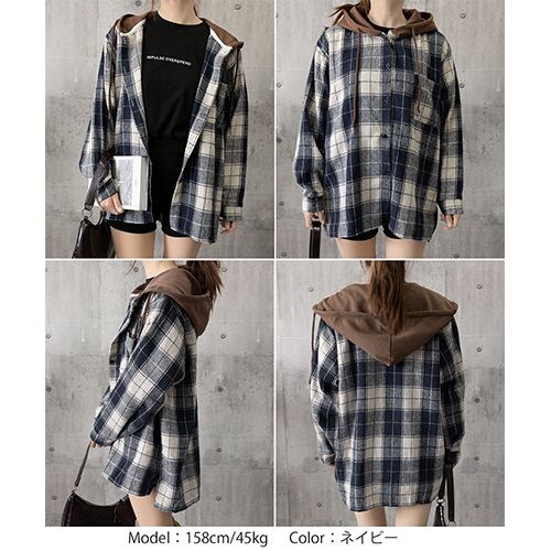 チェック柄シャツにフードを組み合わせたフェイクレイヤード風トップスは、ゆったりとしたシルエットで抜け感があり、軽やかな着心地ながら秋冬に嬉しいあたたかさを備えた一枚。ほどよい厚みと立体的なフードがカジュアルなこなれ感を演出し、デニムやスウェットと合わせるだけでラフにまとまるデイリーコーデが完成する。普段使いしやすく、季節感も楽しめる万能アイテムに仕上がっています。